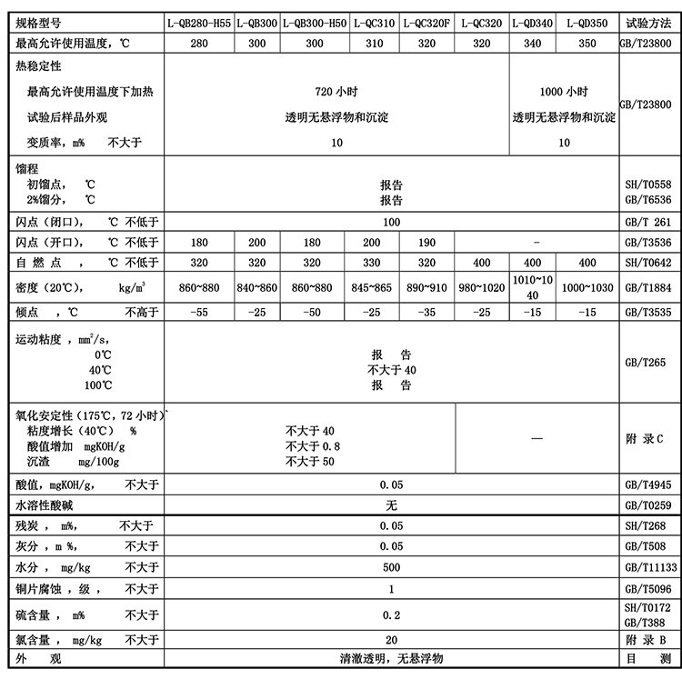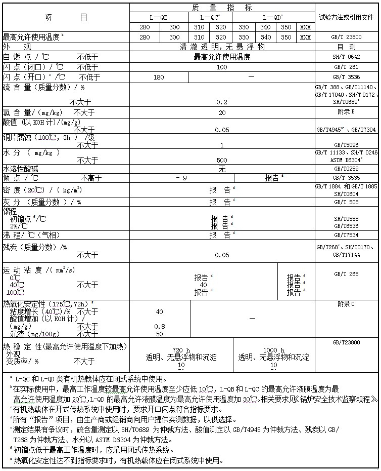 表1. GB23971-2009 有機(jī)熱載體的技術(shù)要求和試驗(yàn)方法