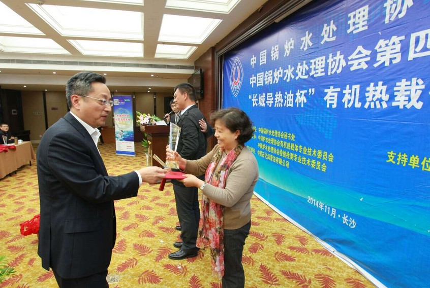 中國鍋爐水處理協會檢驗檢測技術委員會主任、江蘇省特檢院常州分院院長李秀中,為我公司王慧經理頒發獎杯與證書。